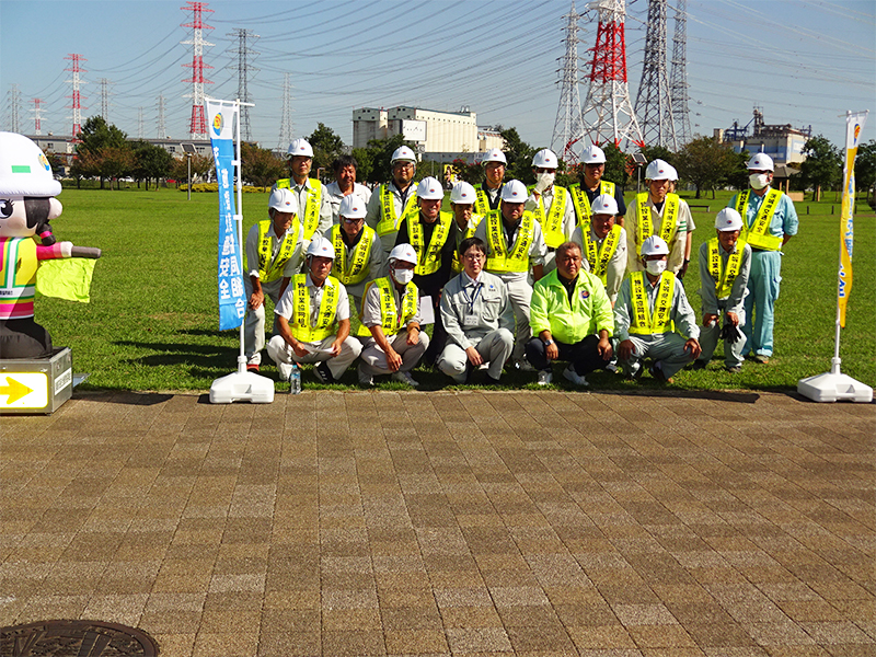 令和5年9月21日に、秋の全国交通安全運動に合わせて石岡市柏原地内の国道355号や県道石岡筑西線で、組合員21社の青年部24人が、大型・小型標識の清掃点検と周辺のゴミ拾いに汗を流しました。