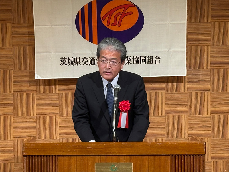 石津協会会長は鹿島アントラーズや水戸ホーリーホックの活躍、工場立地件数の増加などにより多くの人々が県内を訪れていることを説明のうえで「今後も道路や施設の整備が進んでいく。交通事故ゼロを目指し、安全安心を守るためには皆様の存在が不可欠」と述べられました。
